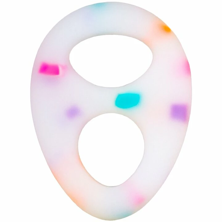 Give your lover something to celebrate with the Confetti Silicone Double Cock Ring from Bondara! Strong and durable, this super-stretchy C-ring engorges your erection and delays climax for more satisfying, longer-lasting pleasure in a clear rainbow confetti finish.