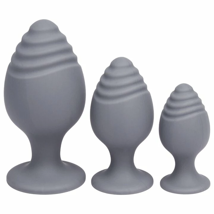 Moulded from solid silky silicone, the ridged tip rubs against your entrance as you insert it, teasing you for what’s to come. These gradually tapered butt plugs grow in size from a booty newbie-friendly 1.1-inch diameter to a ring-widening 1.8-inches. Once inside, it will press against your pleasure-packed P-spot providing the most intense orgasms.