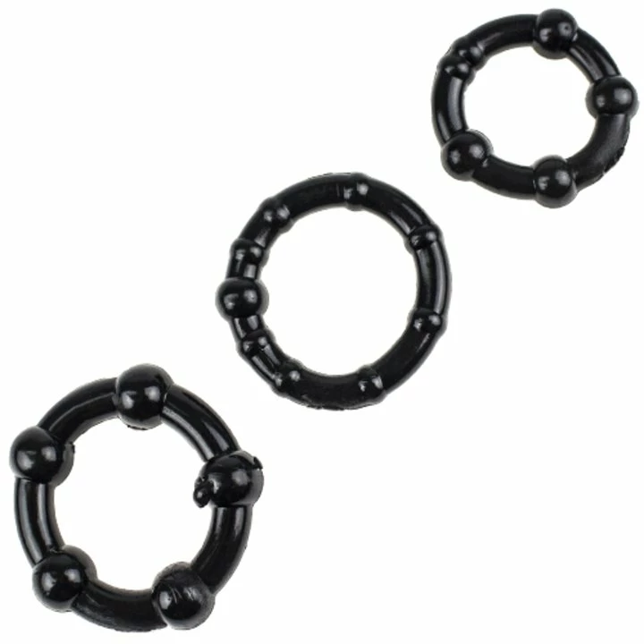 β’ Three stretchy, comfortable cock rings to choose fromΒ
