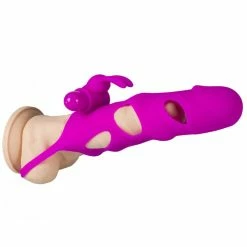 Outlet 🥰 Bondara Magenta Silicone Vibrating Rabbit Cock Sleeve ❤️