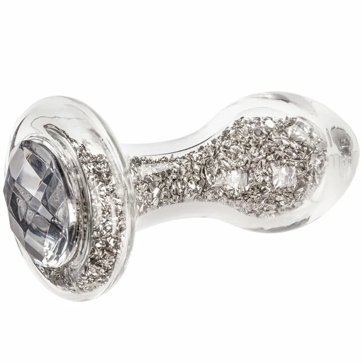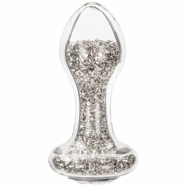 This shining example of anal play is filled with silver confetti chips that create a delightful quiet jingling noise in the hollow bulb as you move around while wearing the butt plug. At the base, the silver jewel glimmers for a teasing, flirty finish. The conductive borosilicate glass is ideal for exploring temperature play; Warm or cool your plug with iced or warmed (not boiling) water.