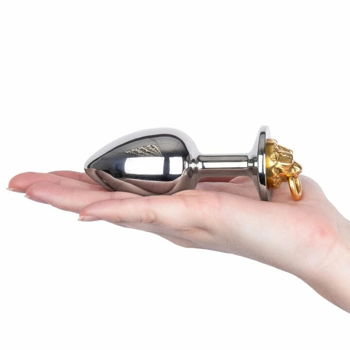 Unleash the beast with the Backdoor Knocker Stainless Steel Butt Plug from Hot Hardware. This unique anal plug stands out from the pack with a lion’s head’ door knocker’ design in solid antique brass. Connect a leash, tie a tail, or even link your lover’s genital piercing to the O-ring for tantalising tugging sensations with every movement!