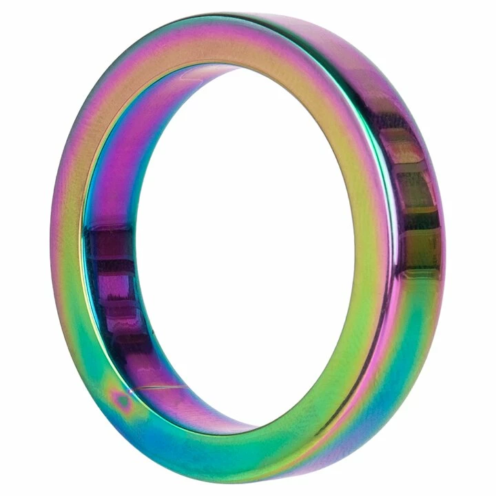 Take pride in your penis with the Rainbow Stainless Steel Cock Ring from Hot Hardware. Like jewellery for your crown jewels, this chunky metal C-ring adds some colour to your cock in a colourful anodised finish.